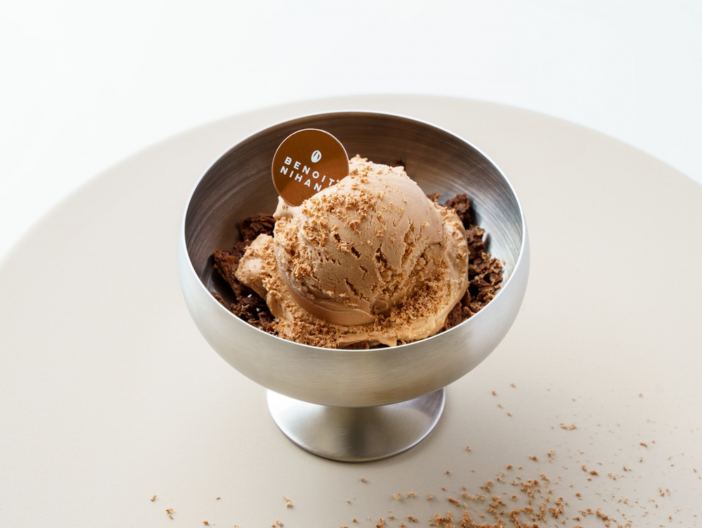 ブノワ・ニアン氏が選別した、産地別のカカオ豆を使用したくちどけの良いアイスクリーム。濃厚さを感じつつさっぱりとした後味をお楽しみいただけます。サクサク食感のフィヤンティーヌとあわせながらお召し上がりください。
