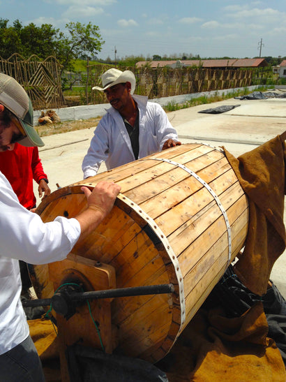 そして、カカオの魅力はここに留まらない。ハシエンダ ビクトリアでは、独自の自然発酵技術が施されている。発酵はカカオ豆に命を吹き込み、チョコレートの香りを形成する重要なプロセスである。ここでは、アンドレスと専門家たちが開発した巧妙な技術により、円筒形の木製のタンクで発酵が行われ、豆はバナナの葉に覆われ、手作業で1日2回撹拌される。この手間暇をかけた作業により、豆は均質に発酵し、洗練された味わいを実現する。