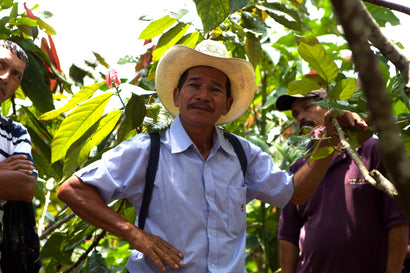 ここは古代マヤの遺産が息づく地で、農家たちは自然と調和しながらさまざまな作物を育てている。彼らはカカオの栽培面積を農園の3分の1に抑え、米、豆、ゴムの木、トウモロコシ、さらには希少木材も栽培することで、生物多様性を保つことに尽力している。これにより、農園内の生態系が豊かになり、異なる種類の植物が共存できる環境が整い、また、病害虫に対する抵抗力も高まる。その結果、豊かな土壌が育まれ、乾季には落ち葉が大地を覆い、湿度を保ちながらカカオの木はすくすくと成長していくのだ。